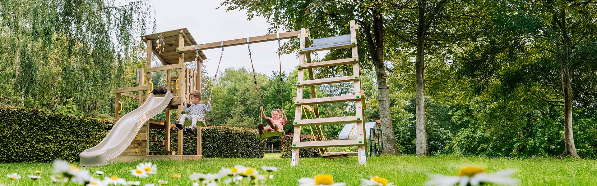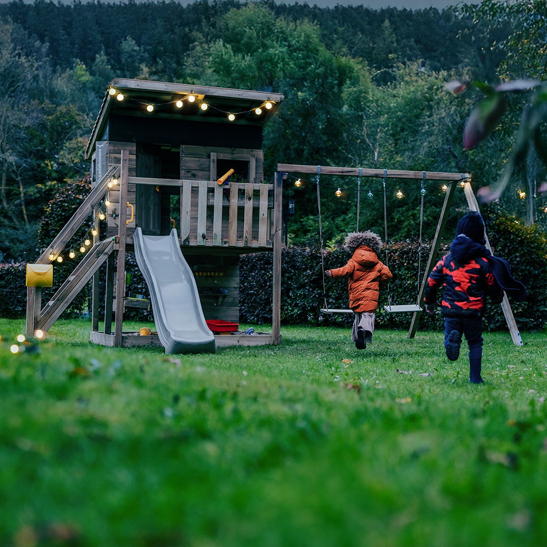 Avec les équipements extérieurs fatmoose, les familles se rendent vite compte que la nature est un environnement de jeu tout simplement beaucoup plus amusant. Chez fatmoose, nous pensons que jouer en plein air est possible toute l'année. Cet espace nous permet non seulement de vivre des moments importants en famille, mais il donne aussi aux enfants l'occasion de jouer, d'apprendre et de grandir dans le meilleur endroit qui soit : au cœur de la nature. Nos aires de jeux, balançoires, toboggans et autres équipements de jeux pour jardin sont conçus de façon à créer un espace de jeu sûr, mais aussi un environnement stimulant pour vos petits explorateurs.